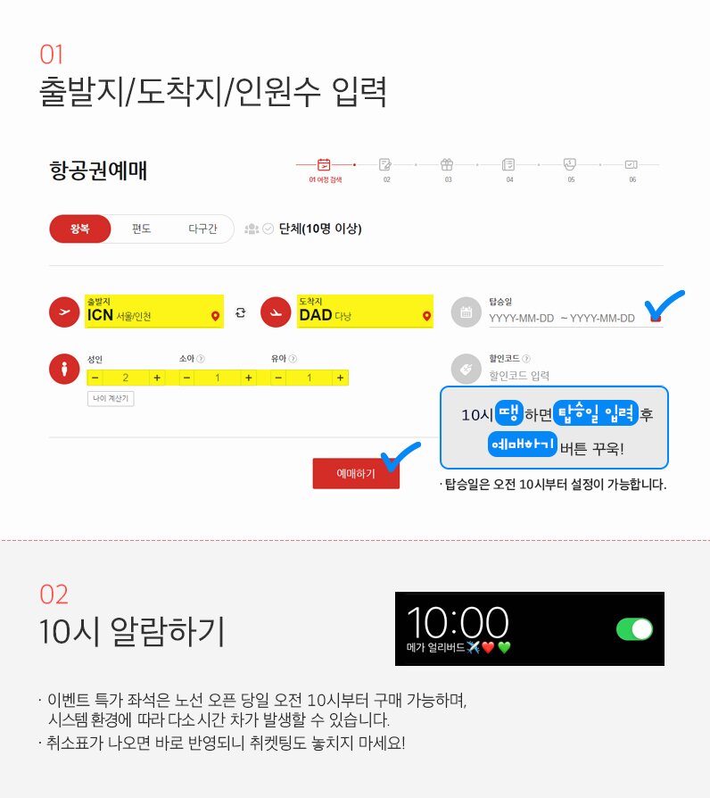 - 이벤트 운임 좌석은 선착순 한정 판매이며 조기 마감될 수 있습니다.