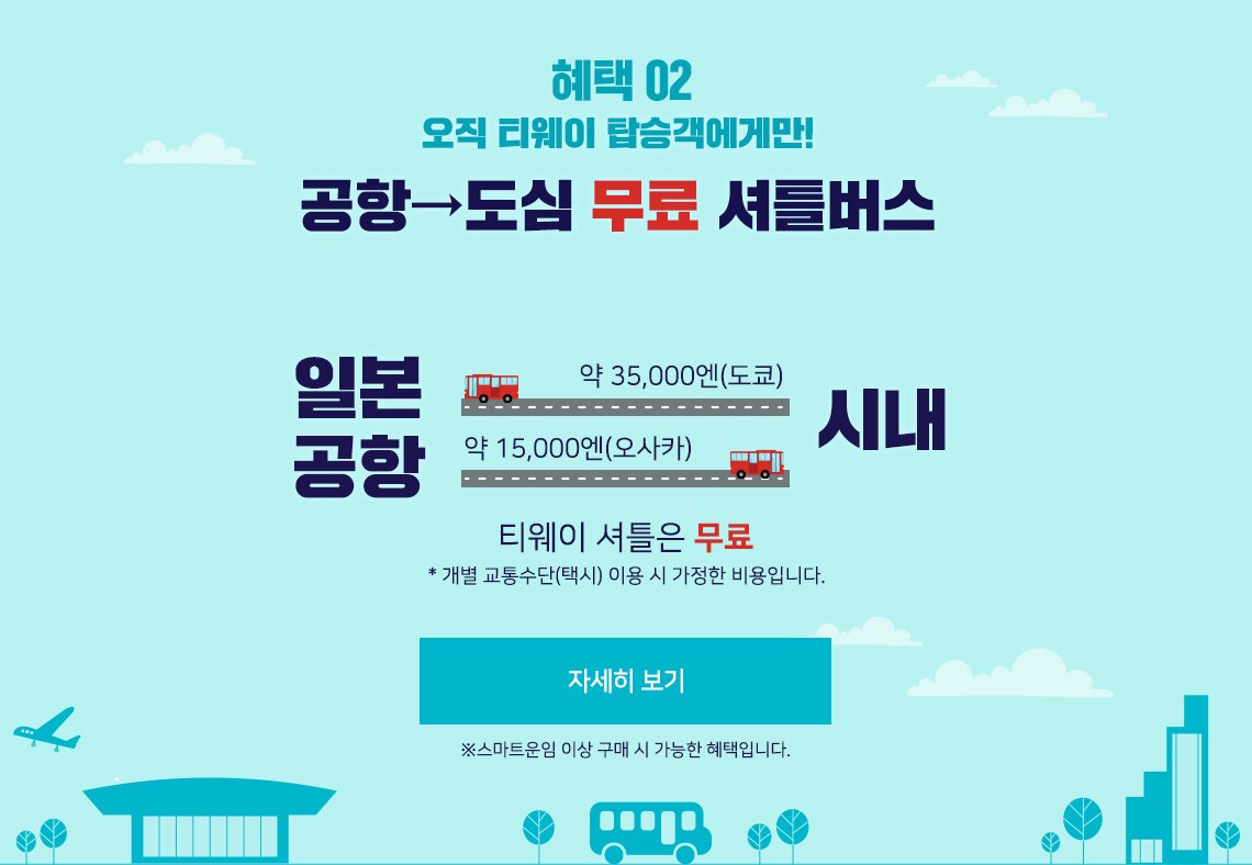 - 당사 홈페이지, 모바일 웹(m.twayair.com), 모바일 앱을 통해서만 예매 가능합니다.
