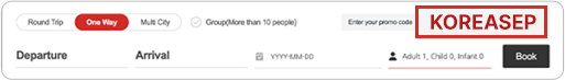 - Please note that there may be cases when the promotion code is not applied during the boarding period for each route depending on the sales policy.