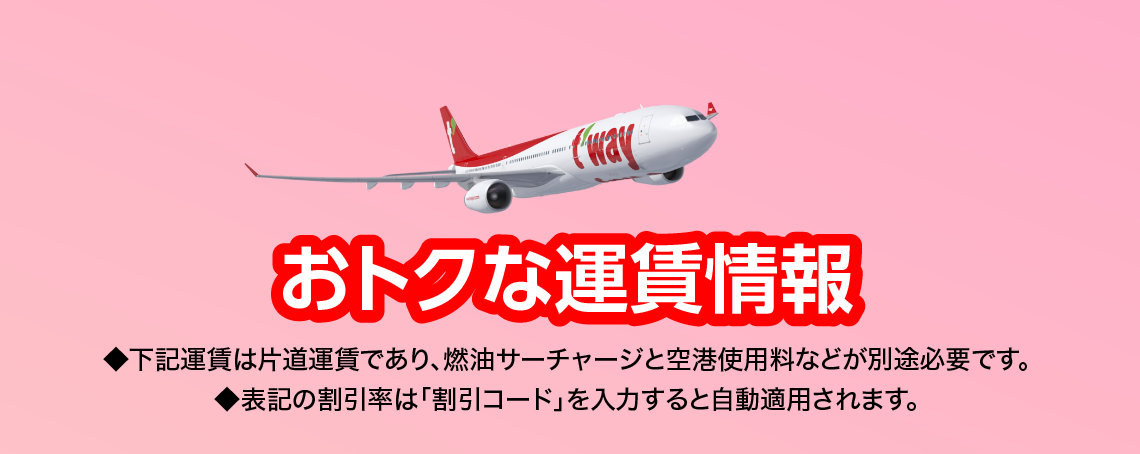 - 当社ホームページ、モバイルウェブ(m.twayair.com)、モバイルアプリを通じてのみ予約可能です。