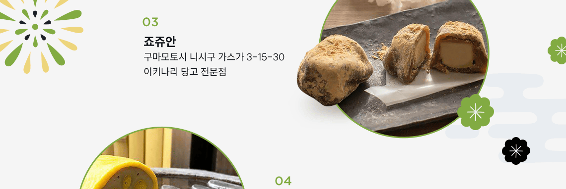 - 03. 죠쥬안 : 구마모토시 니시구 가스가 3-15-30 / 이키나리 당고 전문점