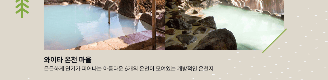 - 와이타 온천 마을 : 은은하게 연기가 피어나는 아름다운 6개의 온천이 모여있는 개방적인 온천지