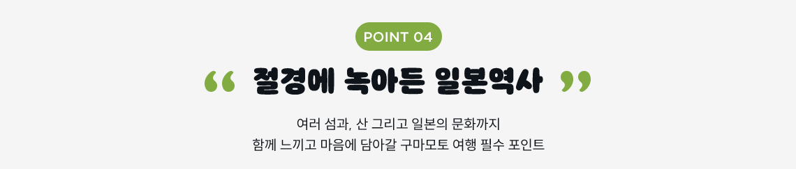POINT 04. "절경에 녹아든 일본역사" 여러 섬과 산, 그리고 일본의 문화까지 함께 느끼고 마음에 담아갈 구마모토 여행 필수 포인트