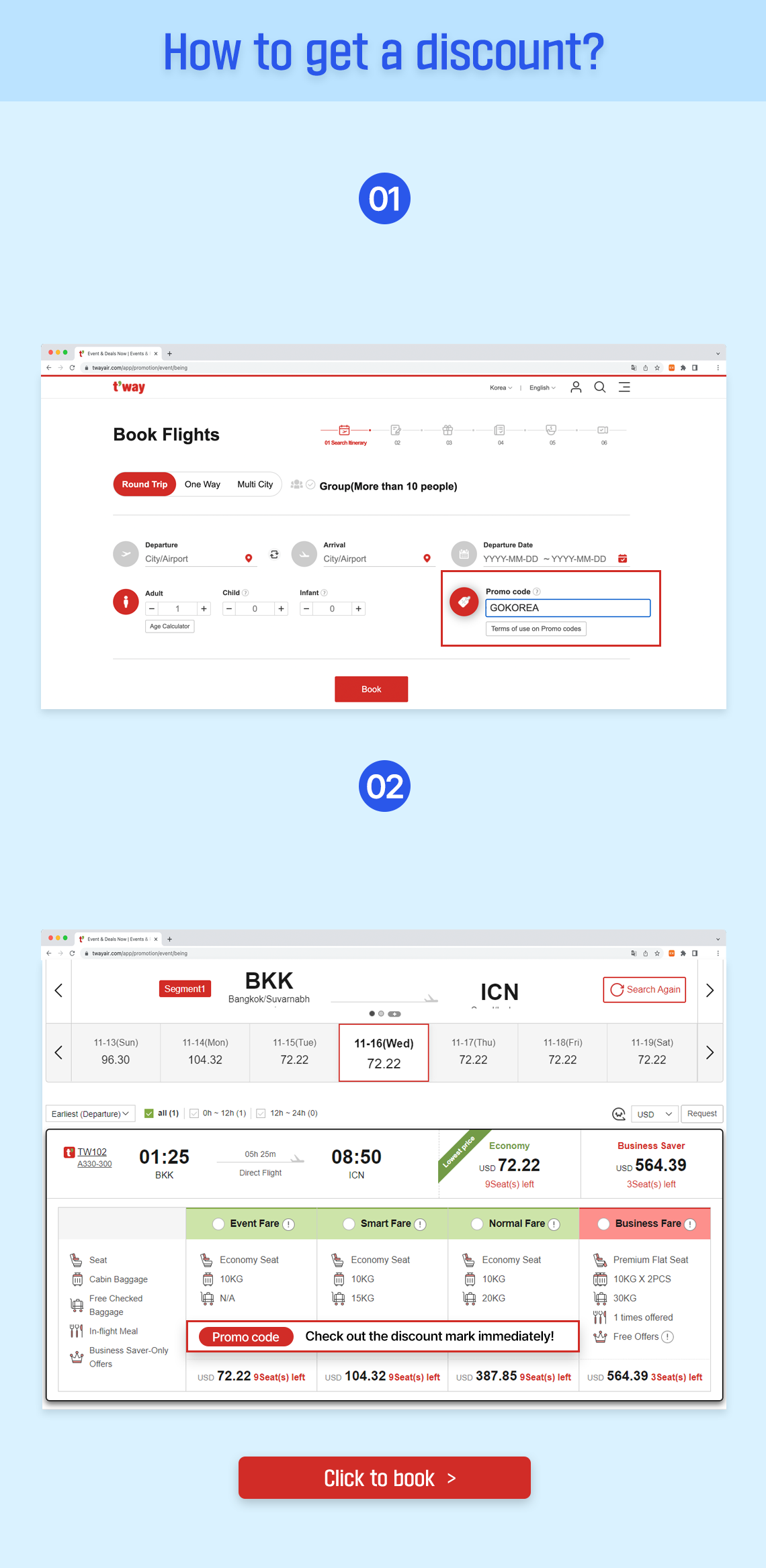- Reservations can only be made through our website, mobile web (m.twayair.com), and mobile app.