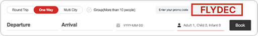 01Enter the promo code 'FLYDEC' and Click ‘Book’