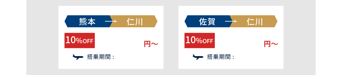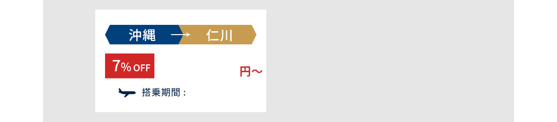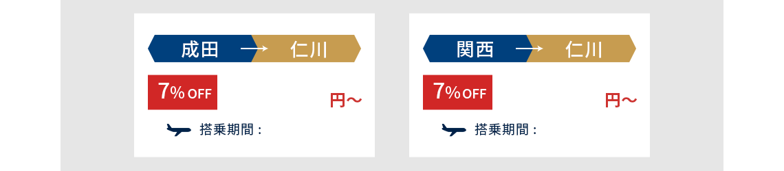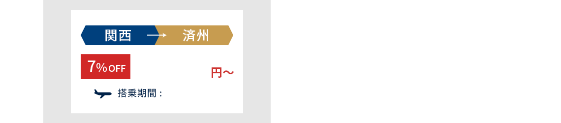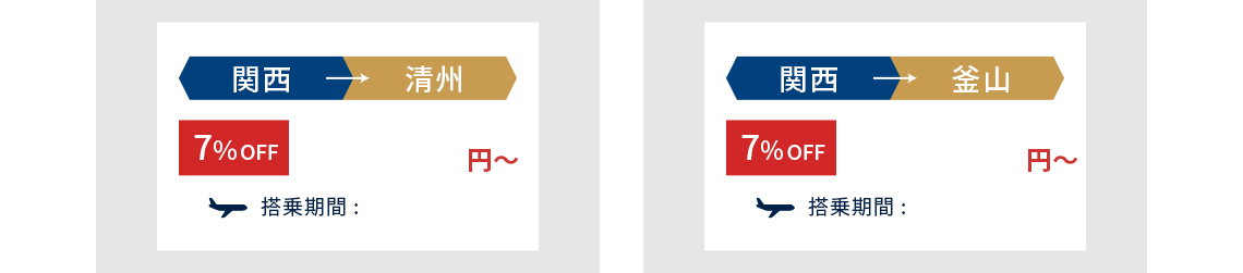 - 営業ポリシーにより、路線別の搭乗期間中に該当割引コードが適用されない日付も発生することがありますので、ご了承ください。