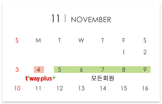 - 2024년 11월 4일 오전 10시 티웨이플러스 회원 사전 예매 시, 비로그인 상태에서 특가 운임이 노출될 수 있으나 해당 운임은 티웨이플러스 회원만 예매 가능합니다.