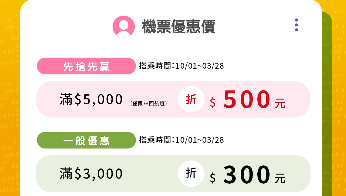 - 取消使用優惠券結算的預訂時,優惠券無法恢復。(機票/行李優惠券均適用)