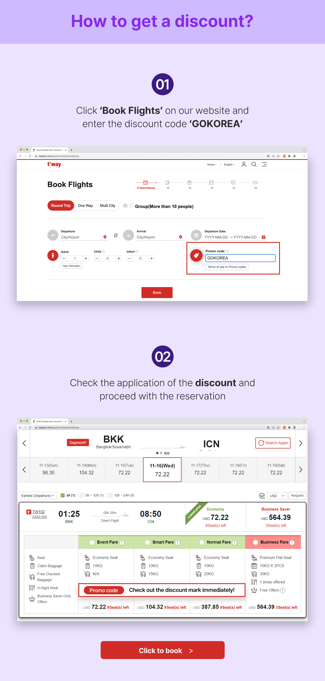 - Reservations can only be made through our website, mobile web (m.twayair.com), and mobile app.