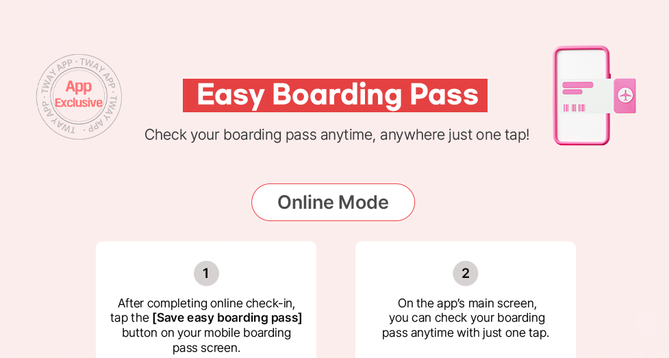 - Reservations can only be made through our website, mobile web (m.twayair.com), and mobile app.