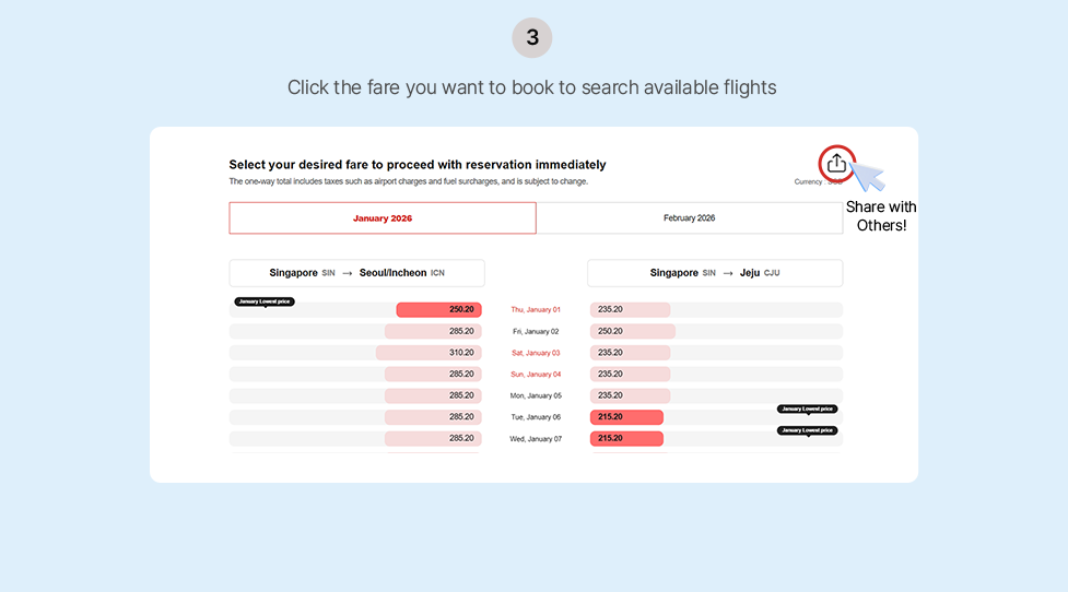 - Applicable Route: Singapore(SIN) – Seoul(ICN)/Jeju(CJU)