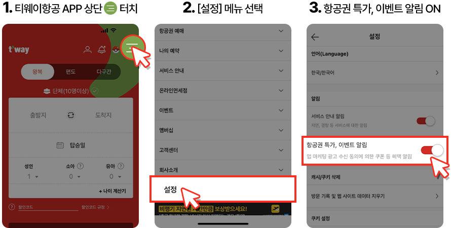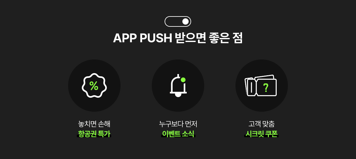 - [항공권 특가, 이벤트 알림]를 동의해야 앱 푸시 이벤트 쿠폰 다운로드 및 사용이 가능합니다.