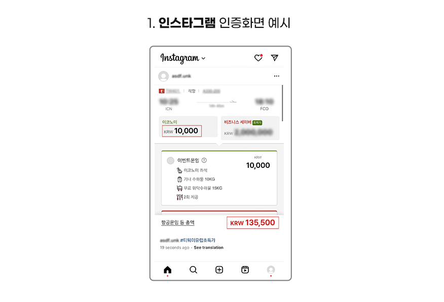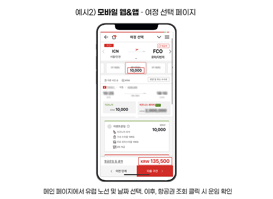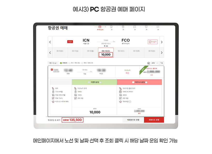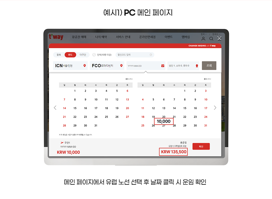 1만원특가 운임(편도 총액 135,500원) 찾아서 인증해주세요.