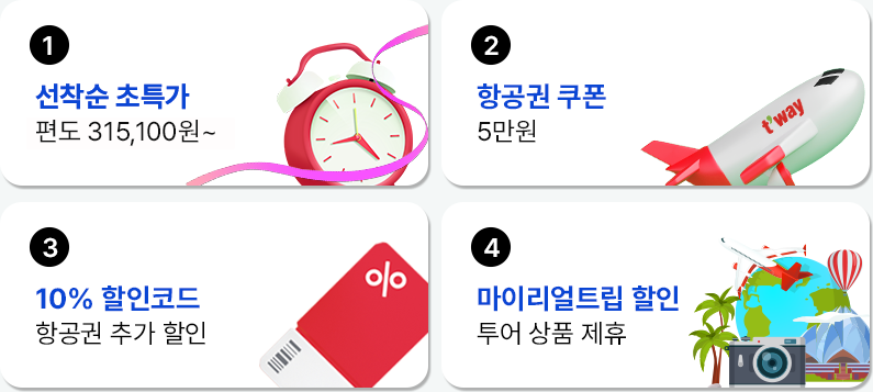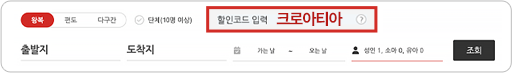- 할인코드 할인은 출발 공항을 인천으로 선택 후 편도/왕복 예약 시에만 적용됩니다. (출발 공항을 해외로 선택 시 적용 불가).