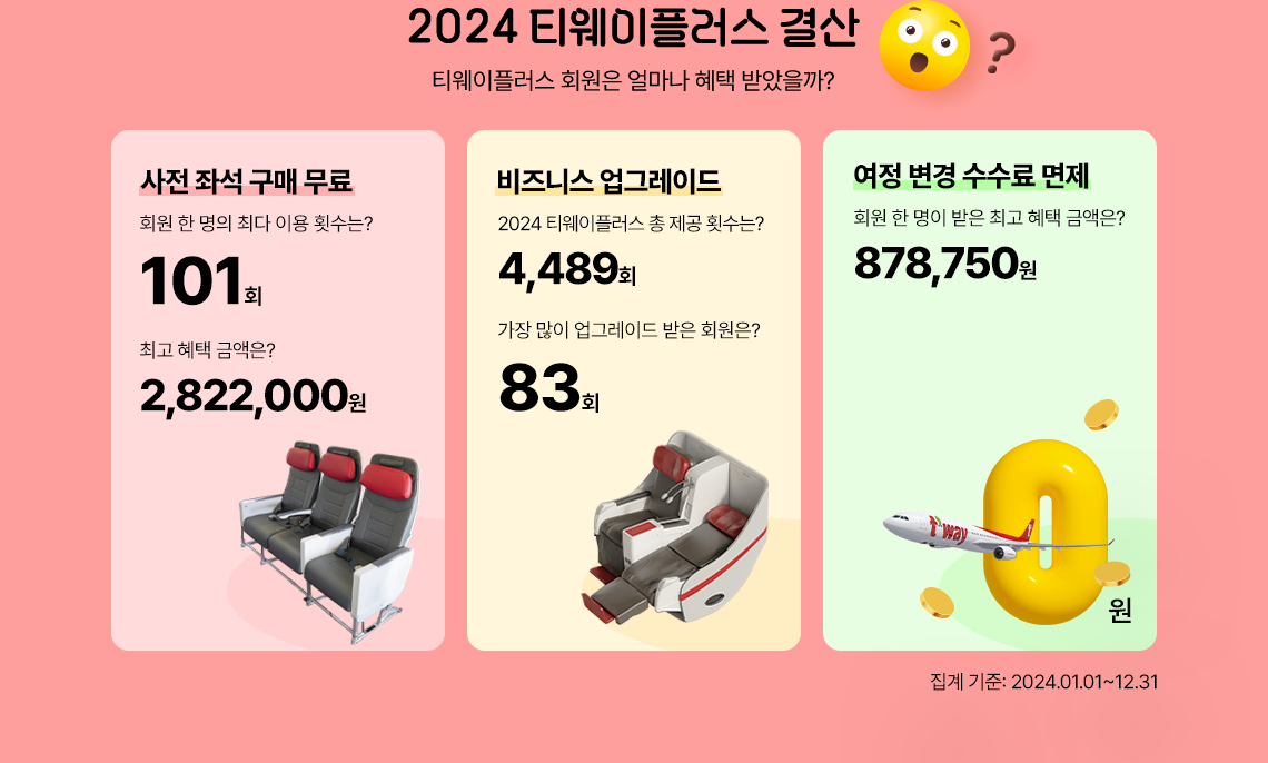 티웨이플러스 회원은 얼마나 혜택 받았을까?사전 좌석 구매 무료