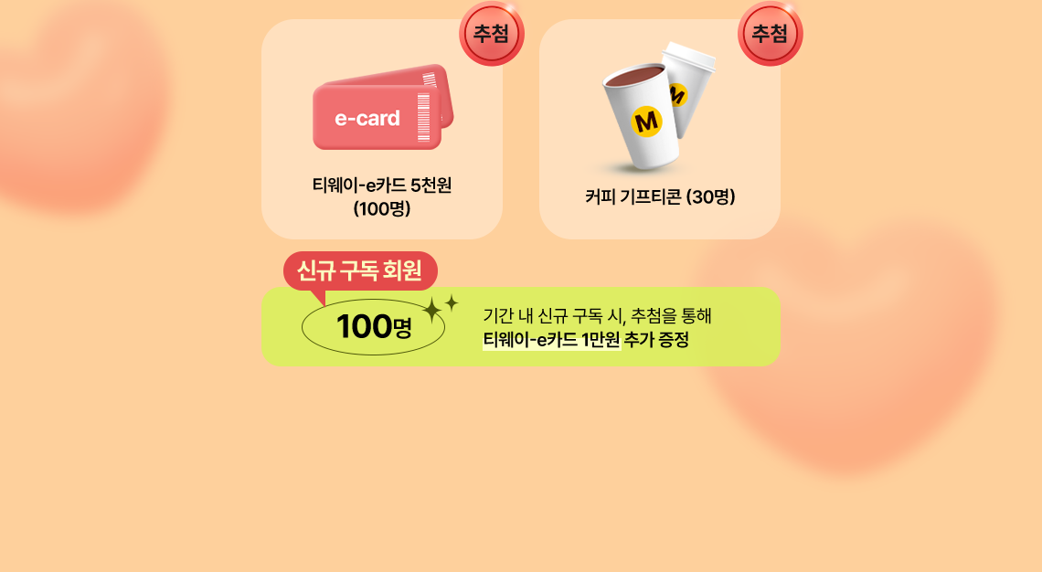 - 해당 이벤트는 당첨자 발표일 기준 티웨이플러스 구독중인 회원에 한해 경품 수령이 가능합니다.