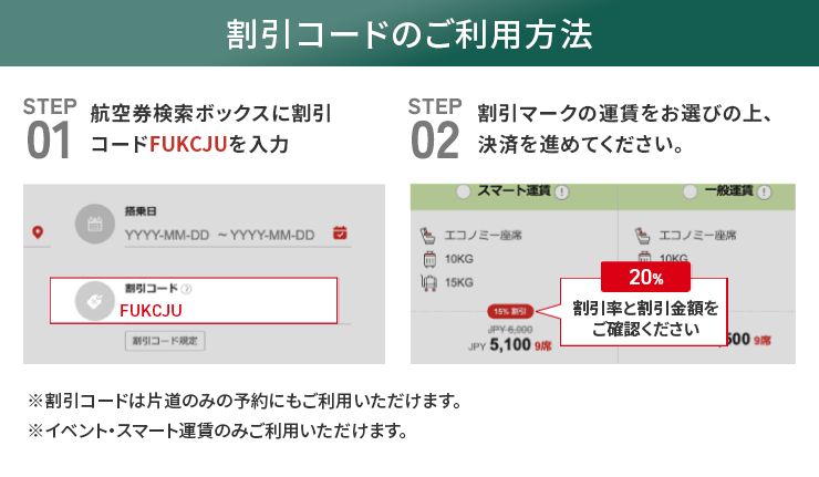 - 割引コードはイベント・スマート運賃のみご利用いただけます。