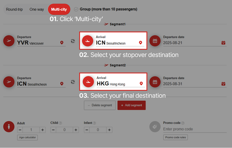 - Applicable Route: Vancouver – Seoul(Incheon)