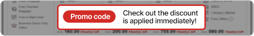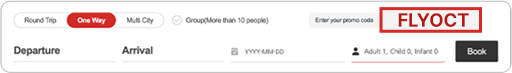 - Please note that there may be cases when the promotion code is not applied during the boarding period for each route depending on the sales policy.