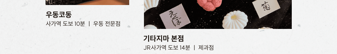 - 기타지마 본점 : JR사가역 도보 14분 / 제과점