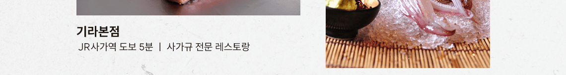 - 기라본점 : JR사가역 도보 5분 / 시가규 전문 레스토랑
