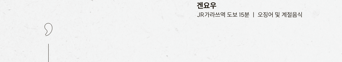 - 겐요우 : JR가라쓰역 도보 15분 / 오징어 및 계절음식