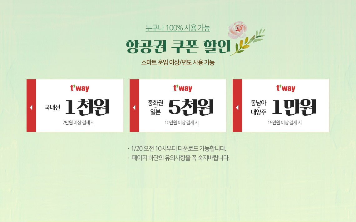 - 본 쿠폰은 1월 ttw 특가주간 노선 스마트 운임 이상 구매 시에만 사용 가능합니다.
