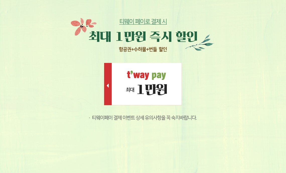 - 티웨이페이 결제 할인에 대한 자세한 내용은 티웨이페이 이벤트 페이지에서 확인 부탁 드립니다. [자세히 보기 ▷]