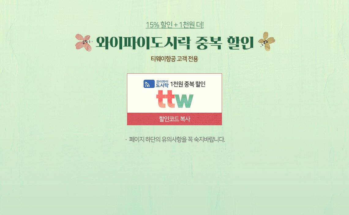 - 본 할인권은 티웨이항공 전용 예약 페이지에서만 사용할 수 있습니다. [예약하기 ▷]