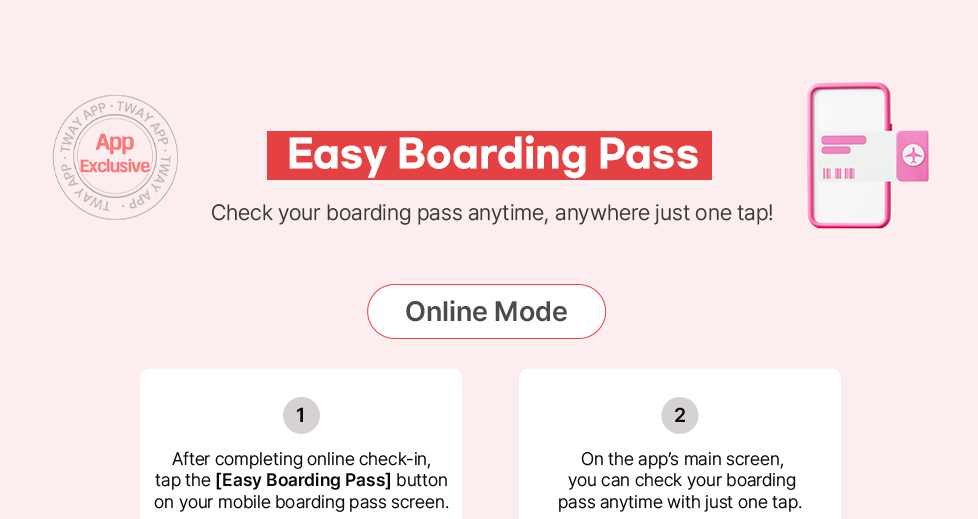 - Reservations can only be made through our website, mobile web (m.twayair.com), and mobile app.