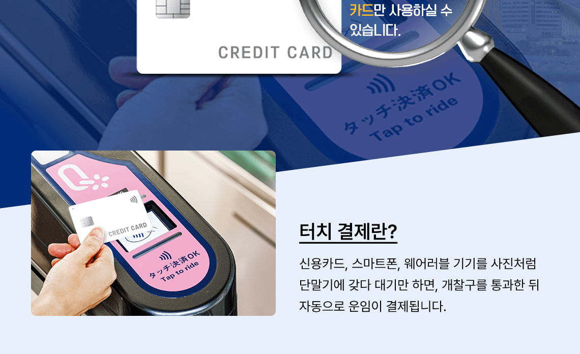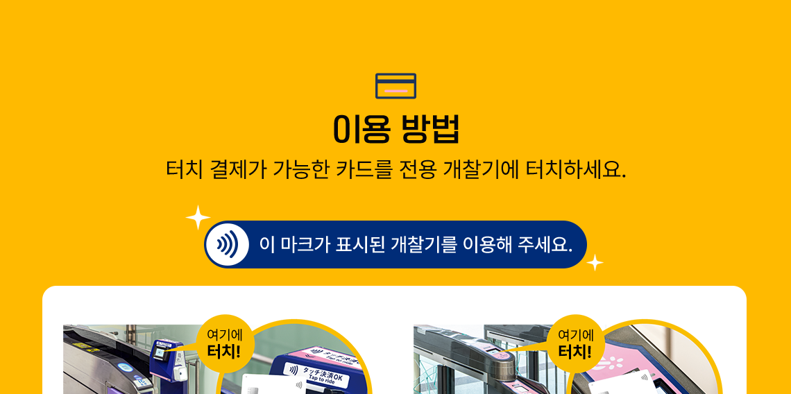 - 터치결제는 이용 가능역에 설치된 전용 개찰기에서 이용 가능합니다. [이용 가능역 확인]
