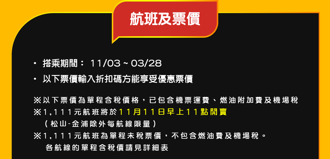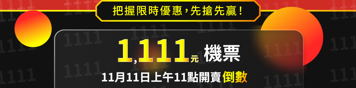 - 特價機票首次開放的時間是2025年11月1日上午9點,依先後順序限量銷售。