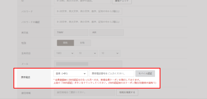 会員登録時にSMS認証を行なった方へのみ発行いたします。