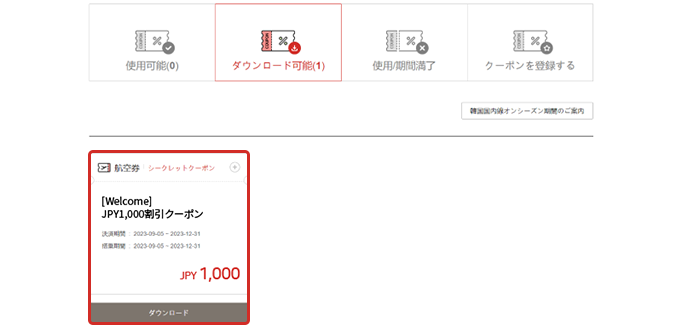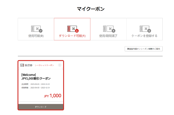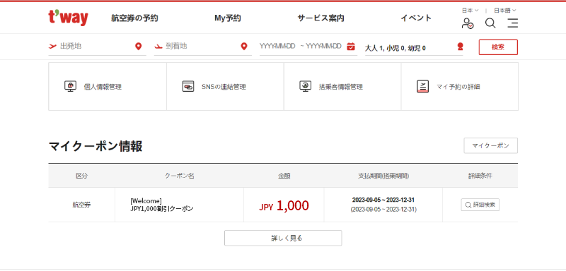 - ウェルカムクーポンは新規会員登録の際に携帯電話番号で本人確認を済ませた方にのみ自動発行されます。 - 発行方法: