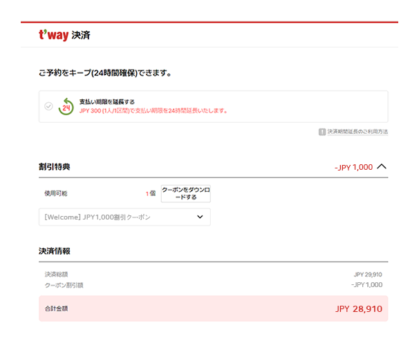 - クーポンを使用してお支払いした予約の件をキャンセルした場合、クーポンの再利用はできません。