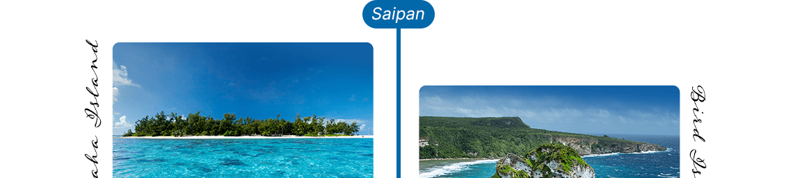 - 마나가하 섬(Managaha Island) : 가라판에서 2.5킬로미터 떨어진 마나가하 섬은 부드러운 백사장과 바닥이 그대로 들여다보이는 투명한 에메랄드빛 바다, 새파란 하늘 3박자를 모두 갖춘 사이판 최고의 명소입니다.