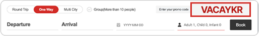 - Please note that there may be cases when the promotion code is not applied during the boarding period for each route depending on the sales policy.