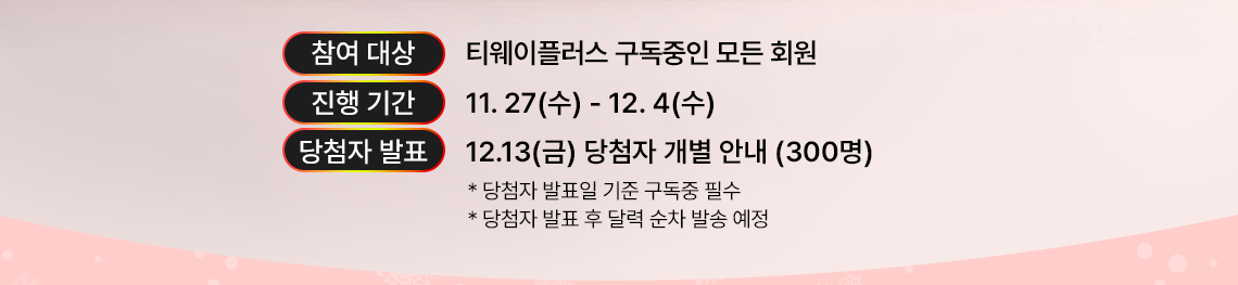 - 참여 대상 : 티웨이플러스 구독중인 모든 회원