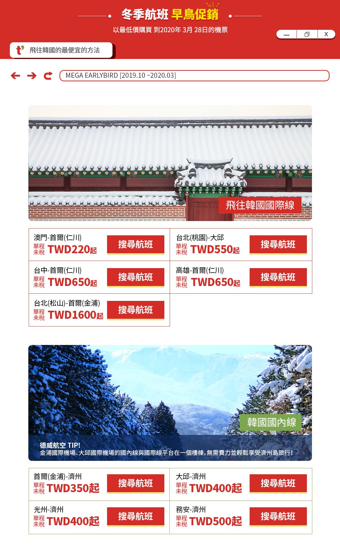 - 如果想以特價購買澳門-仁川的機票,首先要購買臺灣出發的韓國機票。