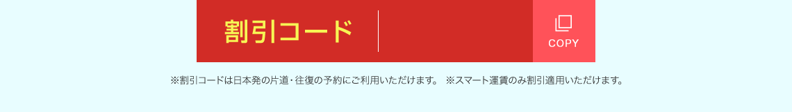 - 割引コードは小児、幼児運賃にはご利用いただけません。