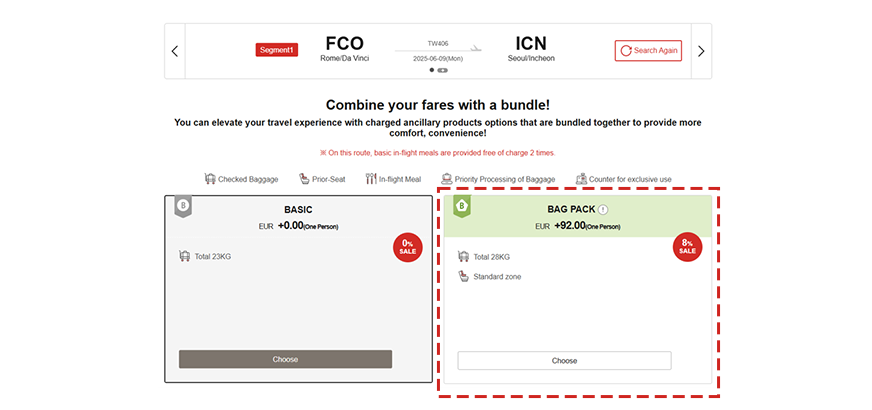 Don’t buy it separately!Seat Selection + Baggage Bundle Save up to 8%