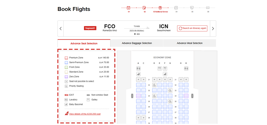 Advance Seat Reservation- Flight Route : Paris·Rome·Barcelona – Seoul (Incheon)