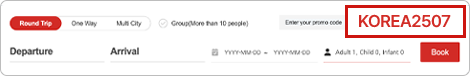 - Please note that there may be cases when the promotion code is not applied during the boarding dates for each route depending on the sales policy.