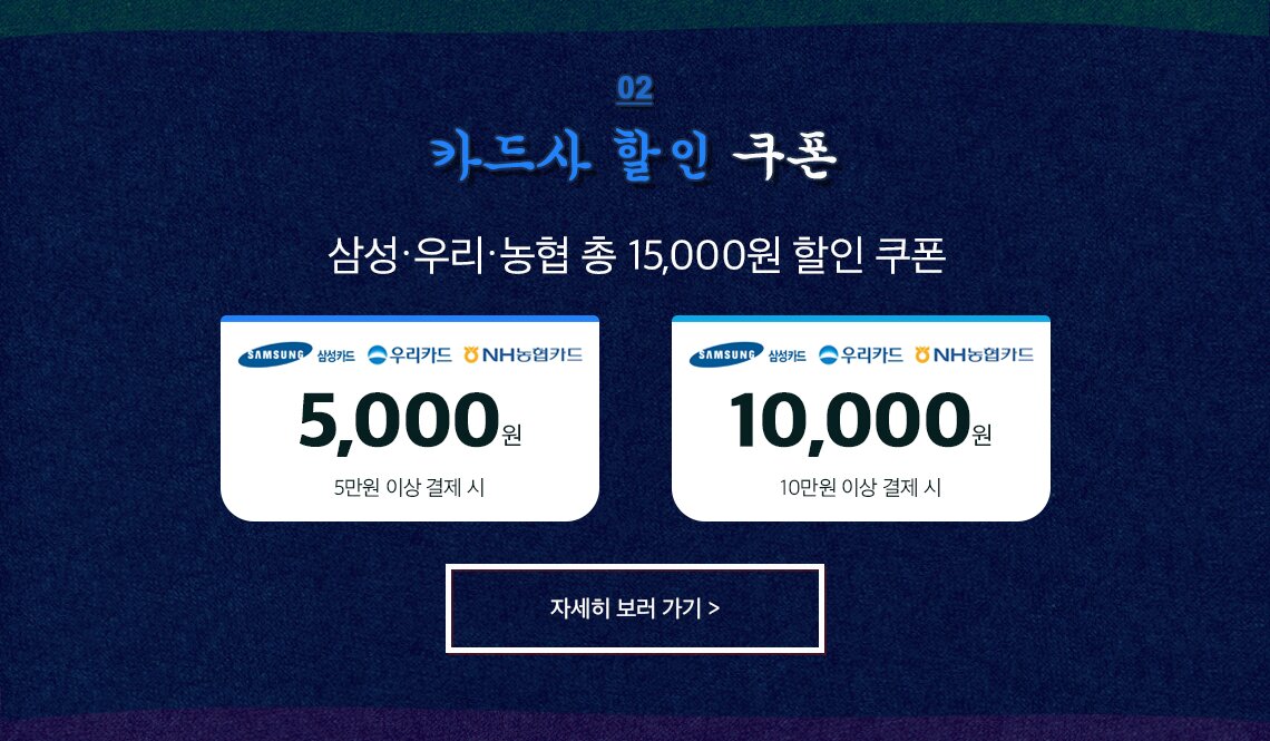 • 혜택 : 5만원 이상 결제 시 10,000원 할인