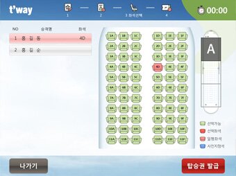 - 유료 좌석 중 비상구 좌석 사전 구매 승객