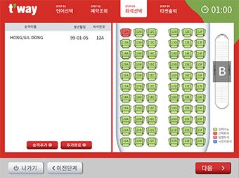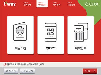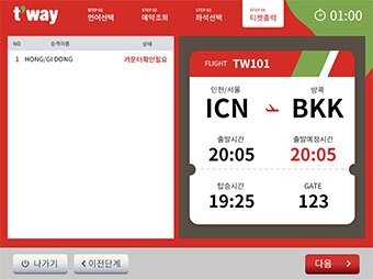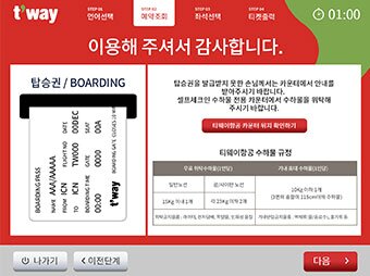 터치스크린 방식의 셀프체크인 기기 이용안내 입니다.