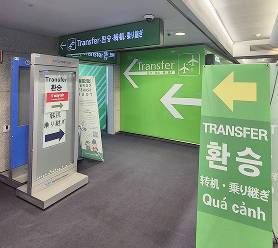 - 탑승권이 없는 환승객은 환승카운터를 방문해야 합니다.